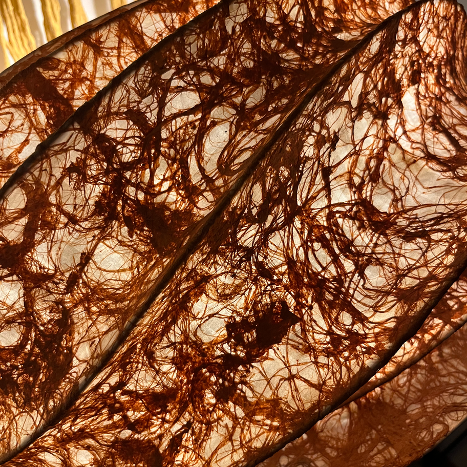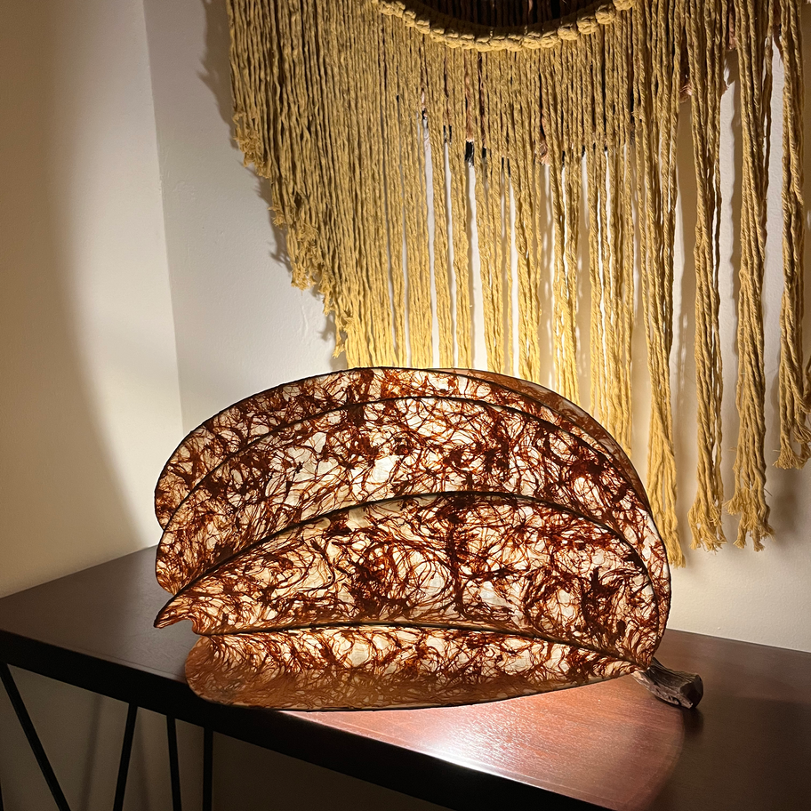 Escultura de luz con material orgánico, papel artesanal de oaxaca y montada sobre tronco de madera de pingüica